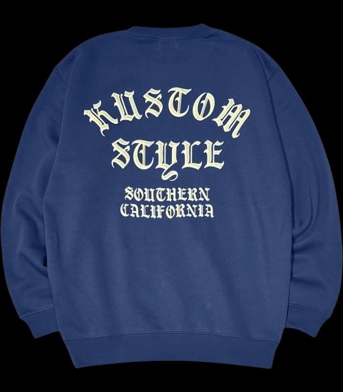 kustomstyle クルーネック スウェットトレーナー 10oz裏起毛 (KSSW2411IND) shades logo crewneck sweat カラー:インディゴ